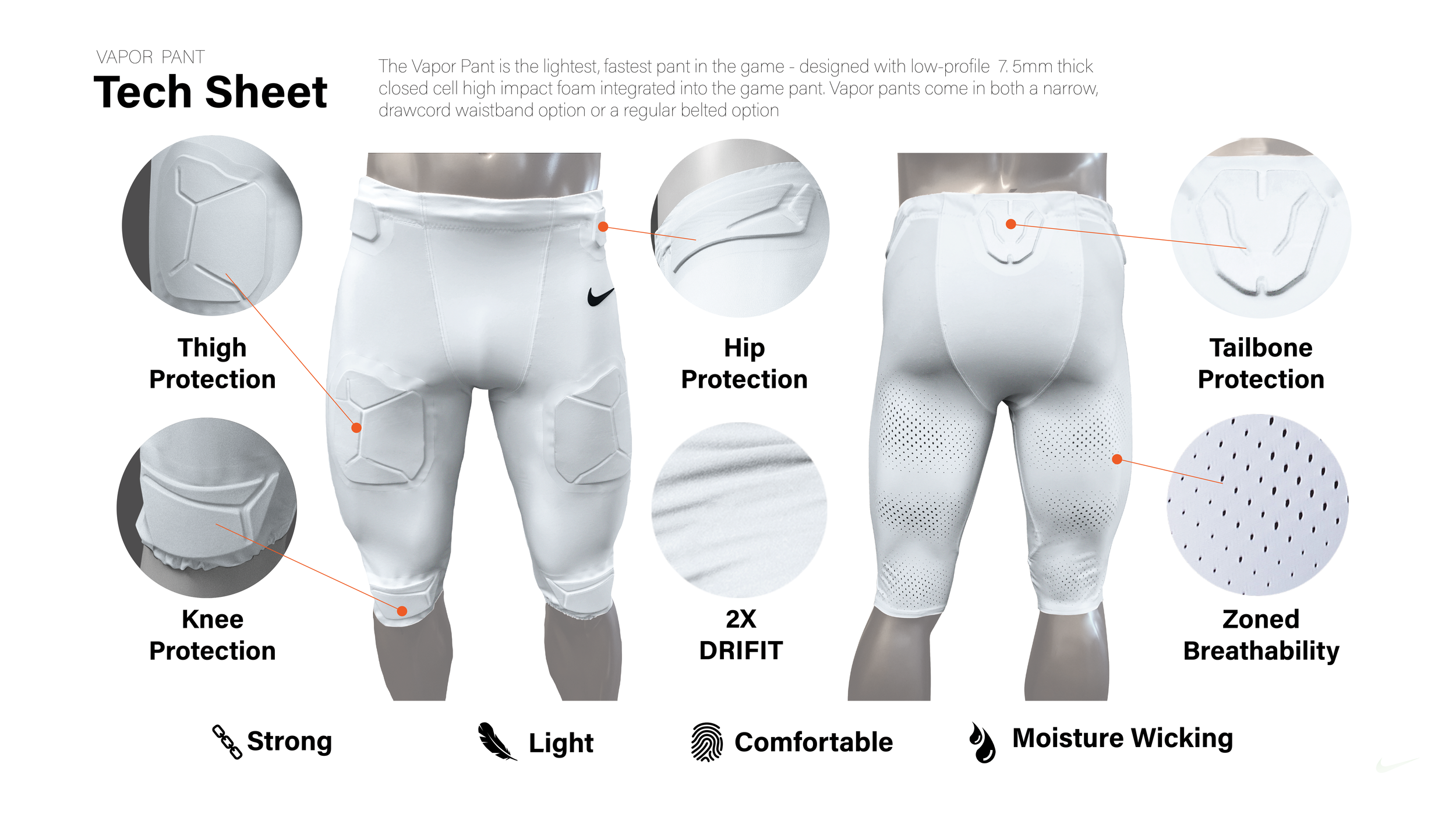 The business, leagues and teams desired new game day performance uniform chassis for American Football including NFL, NCAA and high school and Hockey including Olympic Federations. New uniforms were expected to exceed past performance benchmarks, be more production friendly, more sustainable and reflect Nike design ethos and embody “Modern Sport”