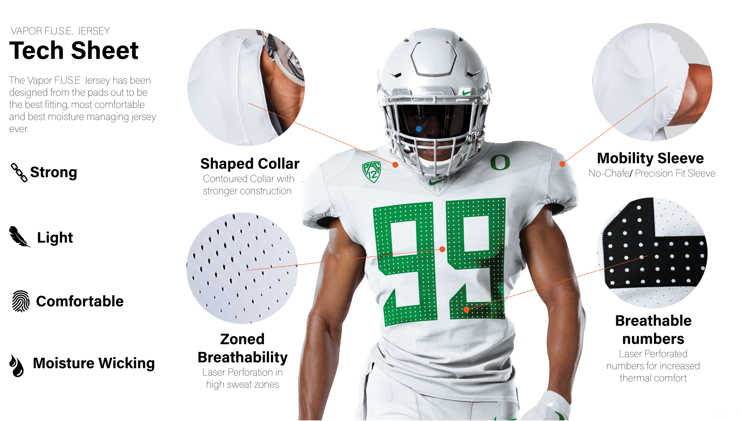 Made from the same fabric as Vapor Fuse, this uniform features body mapped engineered laser perf ventilation, Articulated sleeves and a shaped collar and new collar grille
